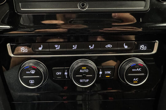 Ook heerlijk simpel is de elektrisch inklapbare trekhaak. Electronic climate control verwarmt of koelt het interieur met een druk op de knop. U kunt bij het inparkeren natuurlijk niet aan alle kanten ogen hebben. Daarom is deze Volkswagen Golf voorzien van parkeersensoren! De auto neemt u werk uit handen doordat hij zelf veel in de gaten houdt. Een regensensor en een automatisch inschakelbare verlichting nemen waar wanneer de ruitenwissers en het licht aan moeten. Met automatisch dimmende binnenspiegel, isofix-aansluiting, centrale deurvergrendeling met afstandsbediening, boordcomputer en verstelbaar stuur is deze auto helemaal compleet.